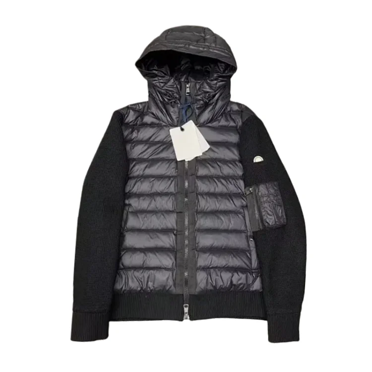 Hooded, patchwork knitted sleeve down jacket 1089